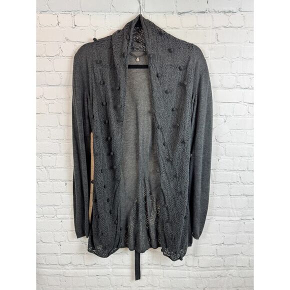 KNITTED & KNOTTED dark gray anthracite open front belted cardigan sweater M