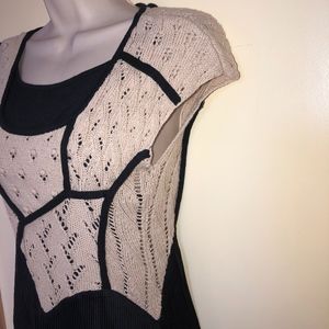 Very cute dress , tan knit top with accordion pleated skirt attached. Nice condition. cotton, poly, modal. size S pit to pit-15" length=40" . it is a slip dress underneath so skirt has a liner