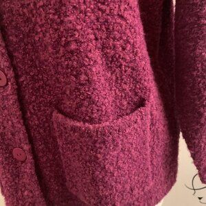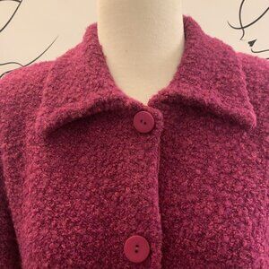 KNITWORKS by MARISA CHRISTINA. Size M. Wool Blend. Sweater/Jacket. This has the appearance of boiled wool not to be confused with garment "pills". Center back 25.2". Sleeve 21.5". Bust 42". Button down. Excellent pre-loved condition. No spots, tears or damage.