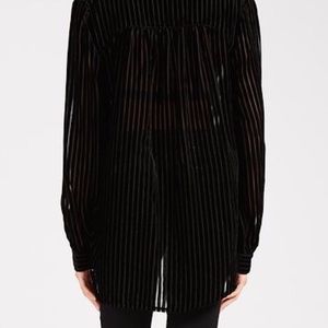 The relaxed fit and button front detail give our Nina Blouse and effortless look. The velvet stripe fabric takes it to the next level of cool. 82% VISCOSE / 18% NYLON.