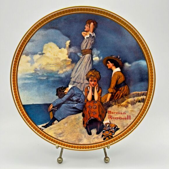 KNOWLES Norman Rockwell Women 1981 Waiting On The Shore 8.5" Plate w/ Box & COA