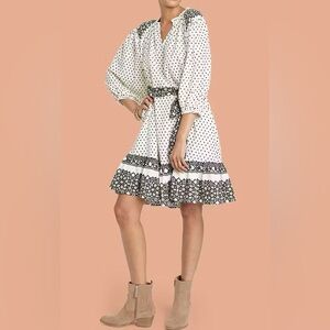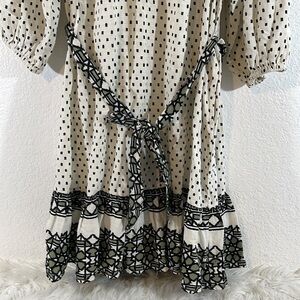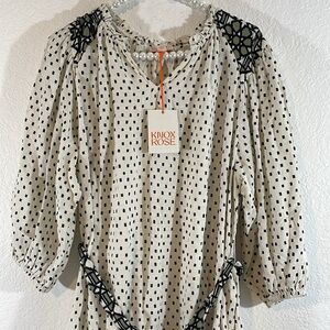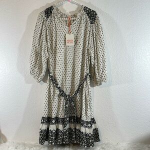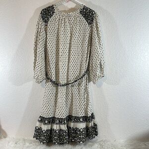 KNOX ROSE A-Line Dress Cream Polka Dots Pockets Ruffle Size Medium NEW