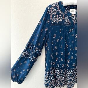Tags Knox Rose blouse, boho top, floral tunic, peasant blouse, blue ruffle blouse, tiered hem top, festival style, soft rayon top, bohemian fashion, Target brand, long sleeve blouse