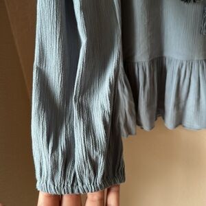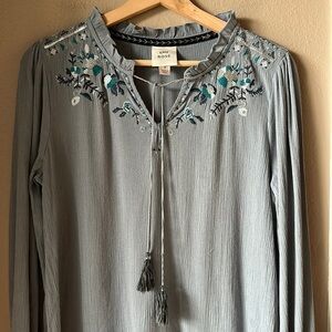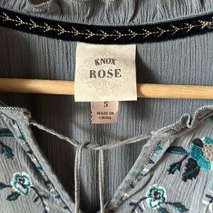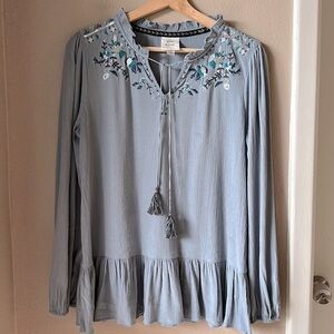 Description: KNOX ROSE Blue Embroidered Peasant Top