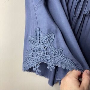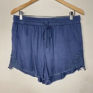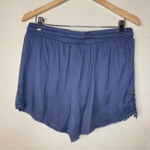 KNOX ROSE Blue Pull-On Shortie Shorts with Embroidered Detail