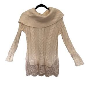 KNOX ROSE Cable knit Cowl Neck Cottage Core Womens Sweater Small Lace Hem Boho