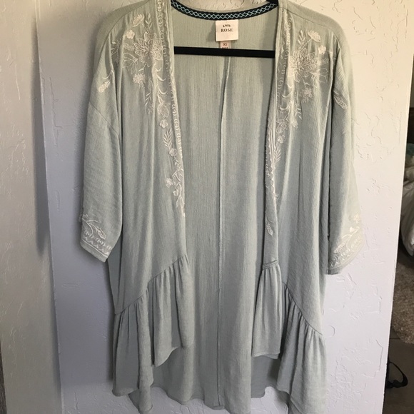KNOW ROSE Cardigan • light mint color with off white stitched detailing • size XS • fits loose, so can be flattering on sizes XS-M • never worn