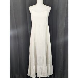 KNOX ROSE! FRESH WHITE CRINKLY GAUZE, RUCHED BACK, TIERED SUN DRESS! SZ M