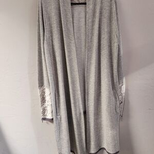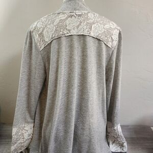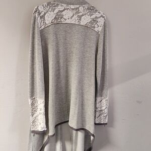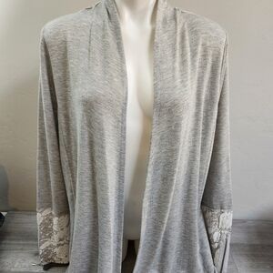 KNOX ROSE Gray White Openfront Cardigan Sweater XL High Low Lace Cuffs/Back