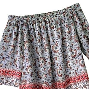 KNOX ROSE | NWOT OFF SHOULDER FLORAL BOHO TOP BELL SLEEVES RUCHED | SIZE: MEDIUM