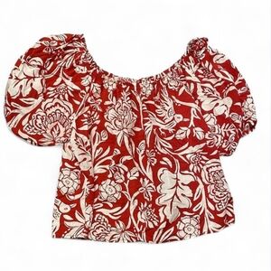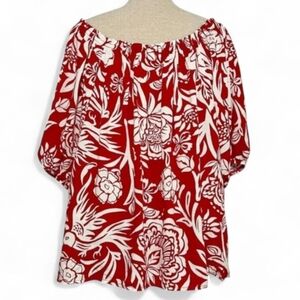 KNOX ROSE Off The Shoulder Top Large Red White Floral Tropical Print