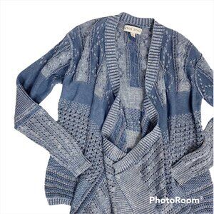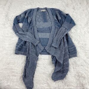 KNOX ROSE Open Weave Blue Draped Waterfall Front Cardigan Hi-low Small