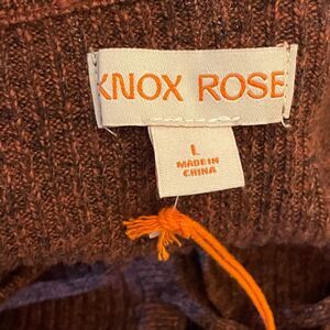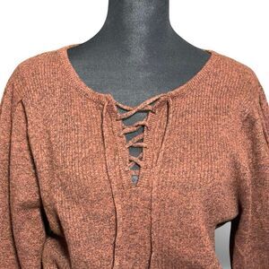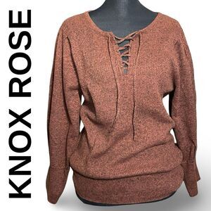 KNOX ROSE Pullover Ribbed Knit Sweater, Heather Brown, 3/4 Bishop Sleeves, L