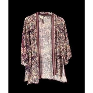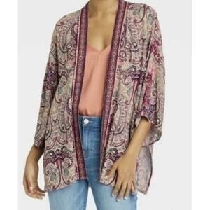 KNOX ROSE Size XS/S Paisley Print Boho Open Front Kimono Topper