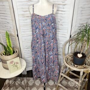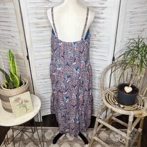 - KNOX ROSE Women's L Off The Coast Tiered Midi Peasant Dress NWT Multi Floral -