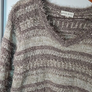 KNOX ROSE Womens Long Sleeve Fuzzy Fringe Pullover Sweater Size Xl