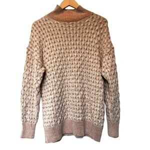 KNOX ROSE | Women's Medium Pink Cream Mock Turtleneck Knit Soft Swirl Sweater