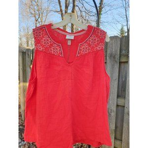 KNOX ROSE Women's Size XXL Top BOHO BLOUSE Shirt w/Embroidered Accents