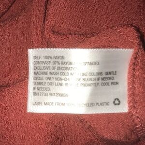 Very pretty rust colored with button keyhole in back. Cute pleats and bric-a-brac details.