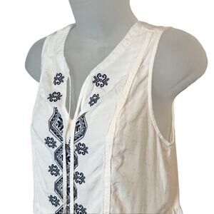 Knox rose white boho sleeveless peplum blouse with ties and blue embroidery. Excellent Condition. Flowy fit.