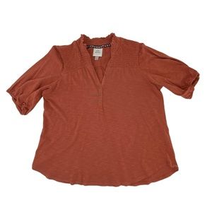 KNOX Rose Womens Henley Blouse Orange Short Sleeve V-Neck Button Up Size L