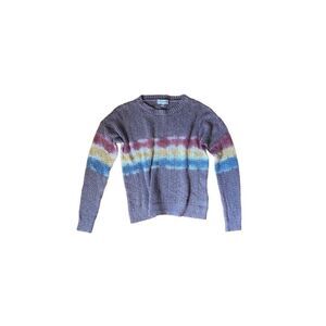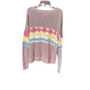 KNOX ROSE LIGHTWEIGHT OPEN KNIT COTTON SWEATER RAINBOW TIE-DYE STRIPED CREWNECK