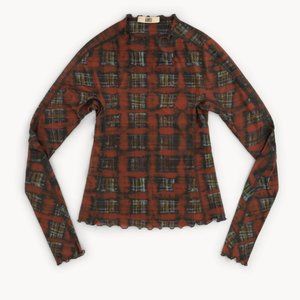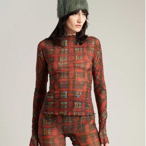 KNWLS HALCYON TOP ACID PLAID GINGER RED CHECK PRINTED JERSEY Small