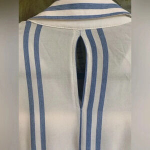 Light and Fluid Fabric~Striped with Pocket over Left Breast. long Sleeves with option to fold up and button close. back Opening just below neck, refer to 2nd Photo.