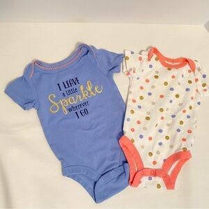 2 Short sleeve bodysuits with gold sparkle accents