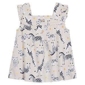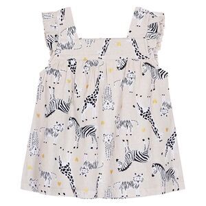* Linen tank top with ruffle sleeve detailing and all over animal graphics