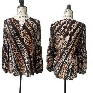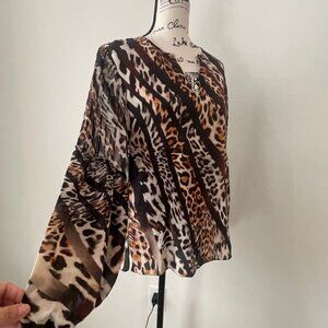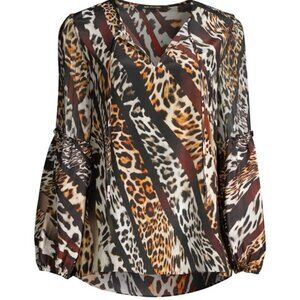 KOBI HALPERIN BLOUSE SILK FALLON MIX LEOPARD-PRINT SZ S EMBELLISHED AESTHETIC