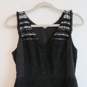 KOBI HALPERIN Black Textured Tweed Wool Blend Officecore Fit and Flare Dress