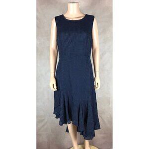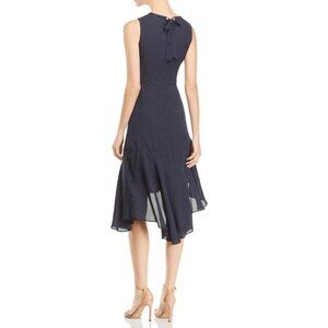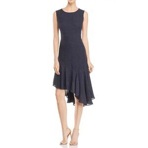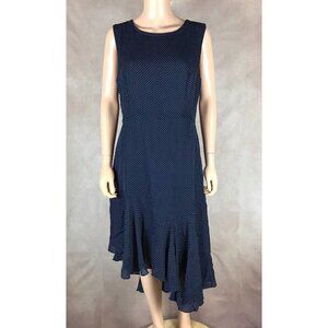 KOBI HALPERIN Navy Silk Polka Dot Asymmetric Dress NWT 14