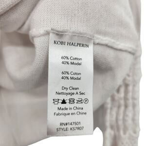 Elevate your wardrobe with this beautiful Kobi Halperin cardigan. This stylish cardigan features delicate crochet lace sleeves and a flattering front tie closure. Made from a comfortable cotton modal blend, it's perfect for layering and adding a touch of sophistication to any outfit.
