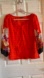 KOBI HALPERIN Silk Blouse Ballon Arms Red Orange Flower Detail Size Large