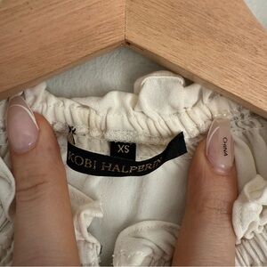 KOBI Halperin 100% silk sequin beaded long sleeve bell sleeve top white