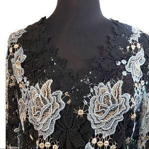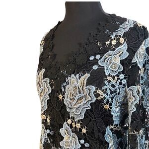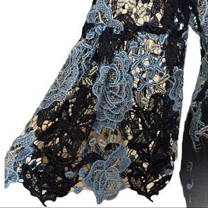 Kobi Halperin Lynn black with blue floral embroidered blouse. 3/4 bell sleeves. Gently used condition.