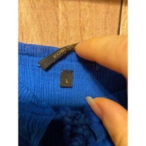 KOBI HALPERIN L Mini Dress Blue Bohemian Flowy Peasant Boho Chic Festival Ready