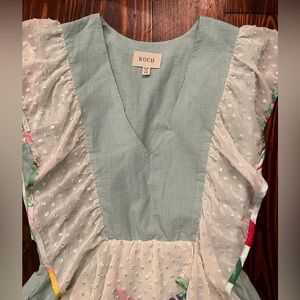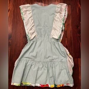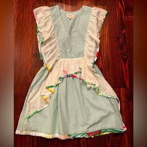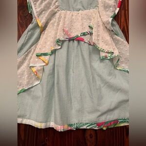 Great preowned condition Koch green seersucker ruffle dress with super fun multicolor trim.