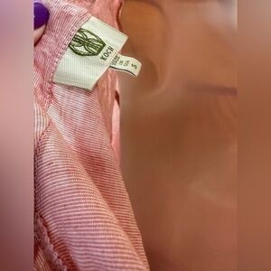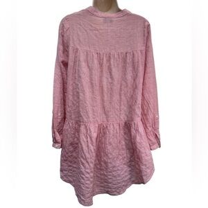 KOCH STRIPPED BUTTON DOWN TUNIC TOP with a fit flare. And adjustable sleeves. In wrinkled like fabric. Made in USA.