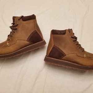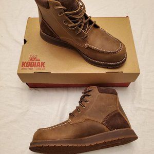 BRAND NEW PAIR OF MEN'S KODIAK DEVICK MOC TOE LEATHER BOOTS WITH SUEDE ON THE COLLAR. COMES WITH ORIGINAL BOX AND ARE SIZE 8.5.