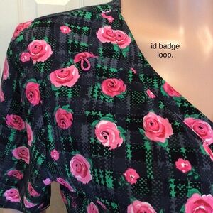 Keywords: KOI scrubs, Betsey Johnson scrubs, floral scrub top, medical uniform, nurse scrub top, vet tech scrubs, dental assistant scrubs
