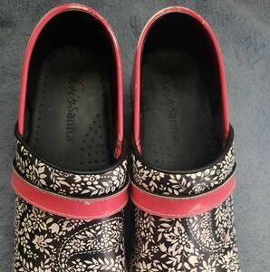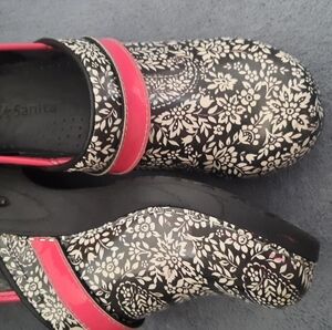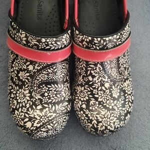 Beautiful black & white floral clogs with pink strap. Size EU 39 US 8-8.5