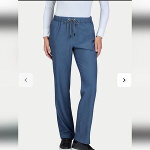 NEXT GENERATION BLUE DENIM EVERYDAY HERO 5 POCKET ELASTIC WAISTBAND CARGO PANT SIZE MEDIUM PETITE BY KOI PRE OWNED LIKE NEW CONDITION