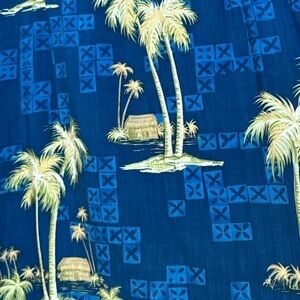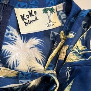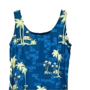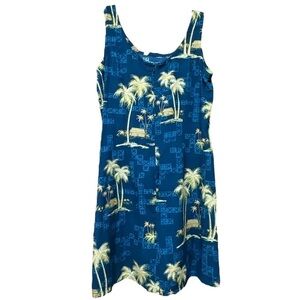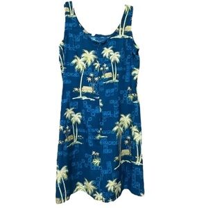 KOKO Island Hawaiian Sleeveless Shift Dress Blue w/ Palm Trees Back Zip-Up L