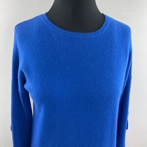 KOKUN Royal Blue Cashmere Sweater Pullover Crewneck Tie Sleeves Size S Small