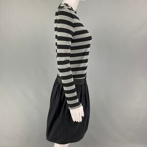 KOLOR Size S Black Grey Polyester Blend Stripe Long Sleeve Dress