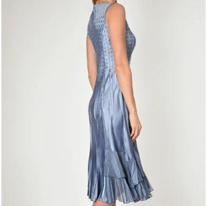 KOMAROV BEADED V-NECK CHARMEUSE VIOLET BLUE OMBRE MIDI DRESS sz XL