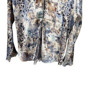 KOMAROV Blue Watercolor Ruffle Bell Sleeve Crinkle Blouse lace size Medium shirt