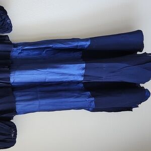KOMAROV Chiffon Peplum Navy Dress Long Sleeve Charmeuse Sz XL NWT Occasion Dress